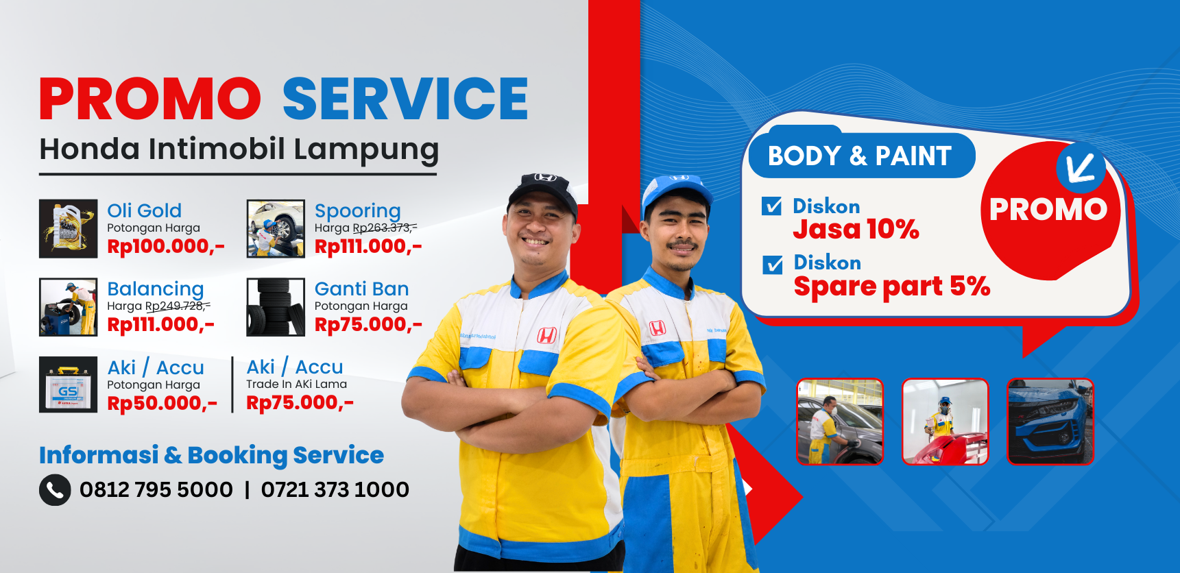 Honda Lampung. Cek biaya perawatan berkala, sparepart dan layanan body repair di Honda Intimobil atau bisa booking service kami via WA/Call ke nomor 08127955000